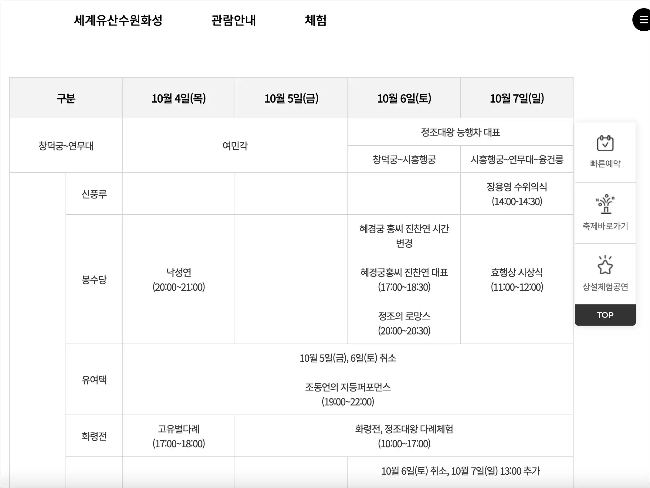 2018년 가을에 열리는 ‘수원화성문화제’는 문화체육관광부가 선정한 2018 문화관광 유망축제 중 하나로, 세계문화유산인 수원화성에서 개최됩니다. 이 축제는 조선 제22대 정조대왕의 효심과 국가 발전의 원대한 꿈을 기리며 진행되며, 주요 행사로는 정조대왕 능행차 공동재현, 혜경궁 홍씨 진찬연 등의 전통재현 행사, 수원천에서 열리는 아름다운 수원사랑등불축제, 그리고 수원화성 내 곳곳에서 다채로운 공연과 체험행사가 있습니다. 이 행사는 국내외 관광객들에게 다양한 즐거움을 제공하며, 2018년 10월 5일(금)부터 7일(일)까지 3일간 수원에서 과거와 현대의 문화예술을 경험하고 먹거리와 볼거리를 즐길 수 있는 훌륭한 기회입니다. 조선시대의 분위기를 생생하게 느끼고 싶다면 꼭 참여해 보세요.